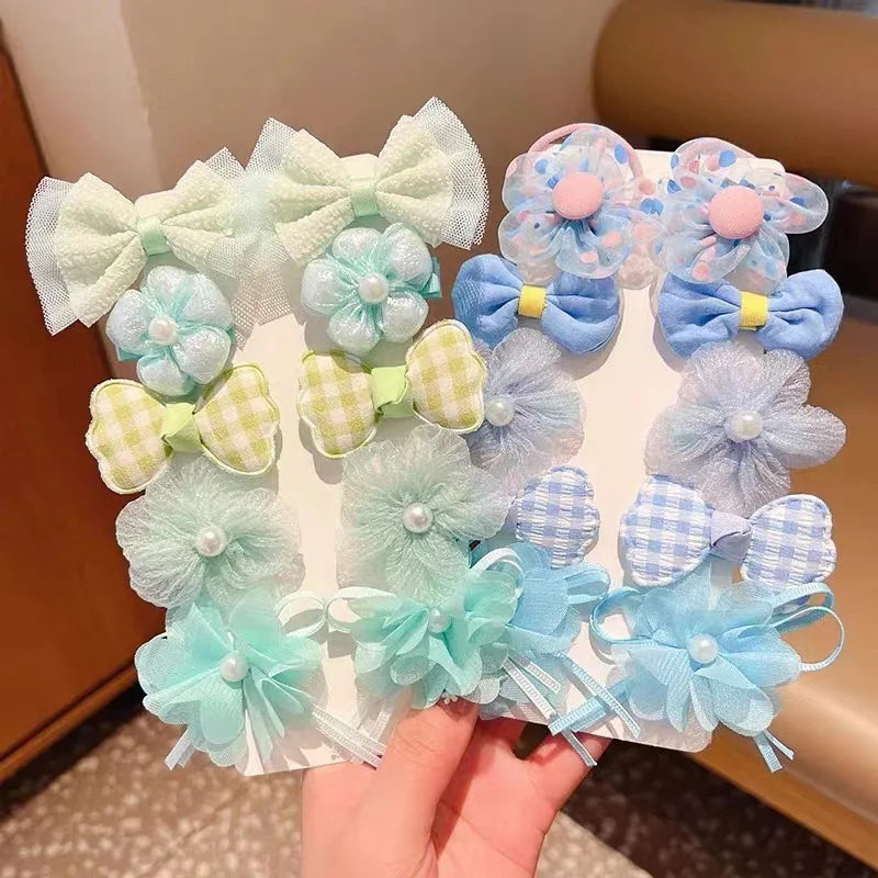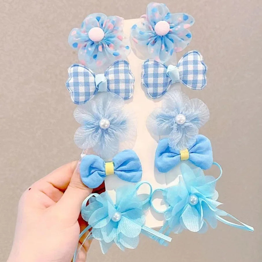 10 Pcs/Set Fantasy Themed Flower and Bow Hair Clips with Mesh and Iron, Embellished with Spikes for Girls Ages 3-6 Years