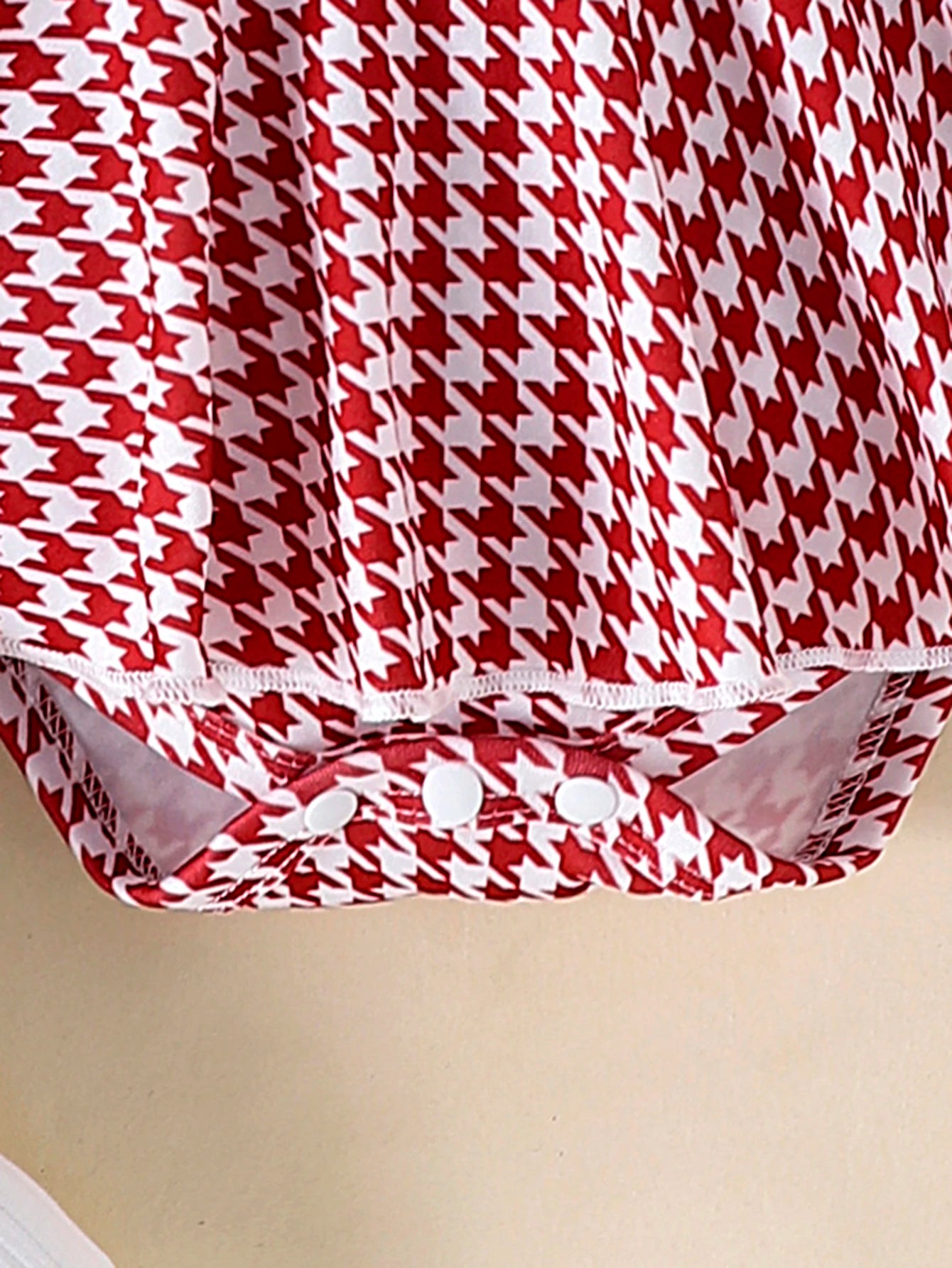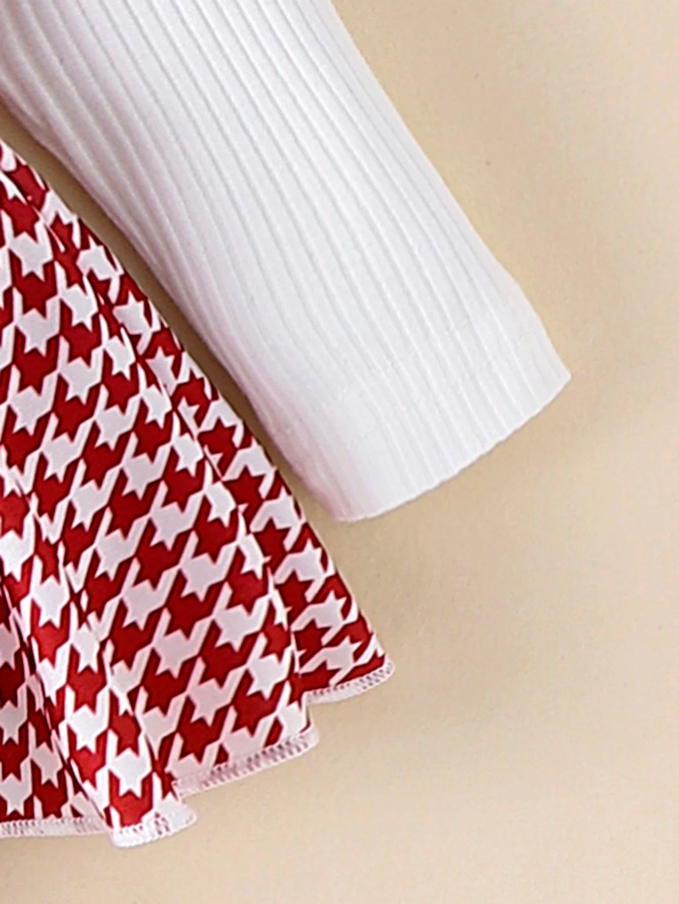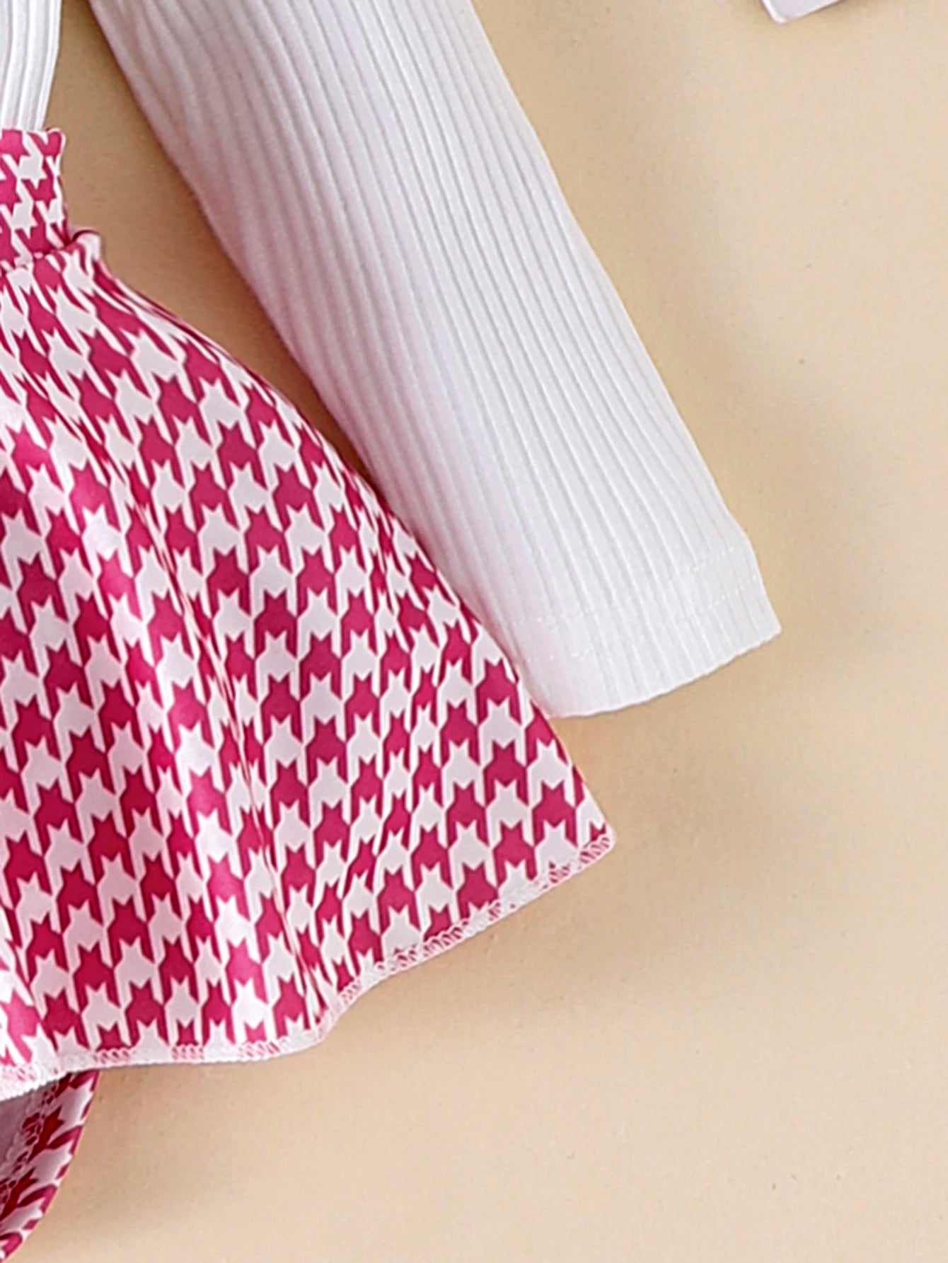 2PCS In Autumn, Baby Girls Aged 0-1 Years Old Have Comfortable Sweet And Cute Black Top + Houndstooth Skirt + Hair Band