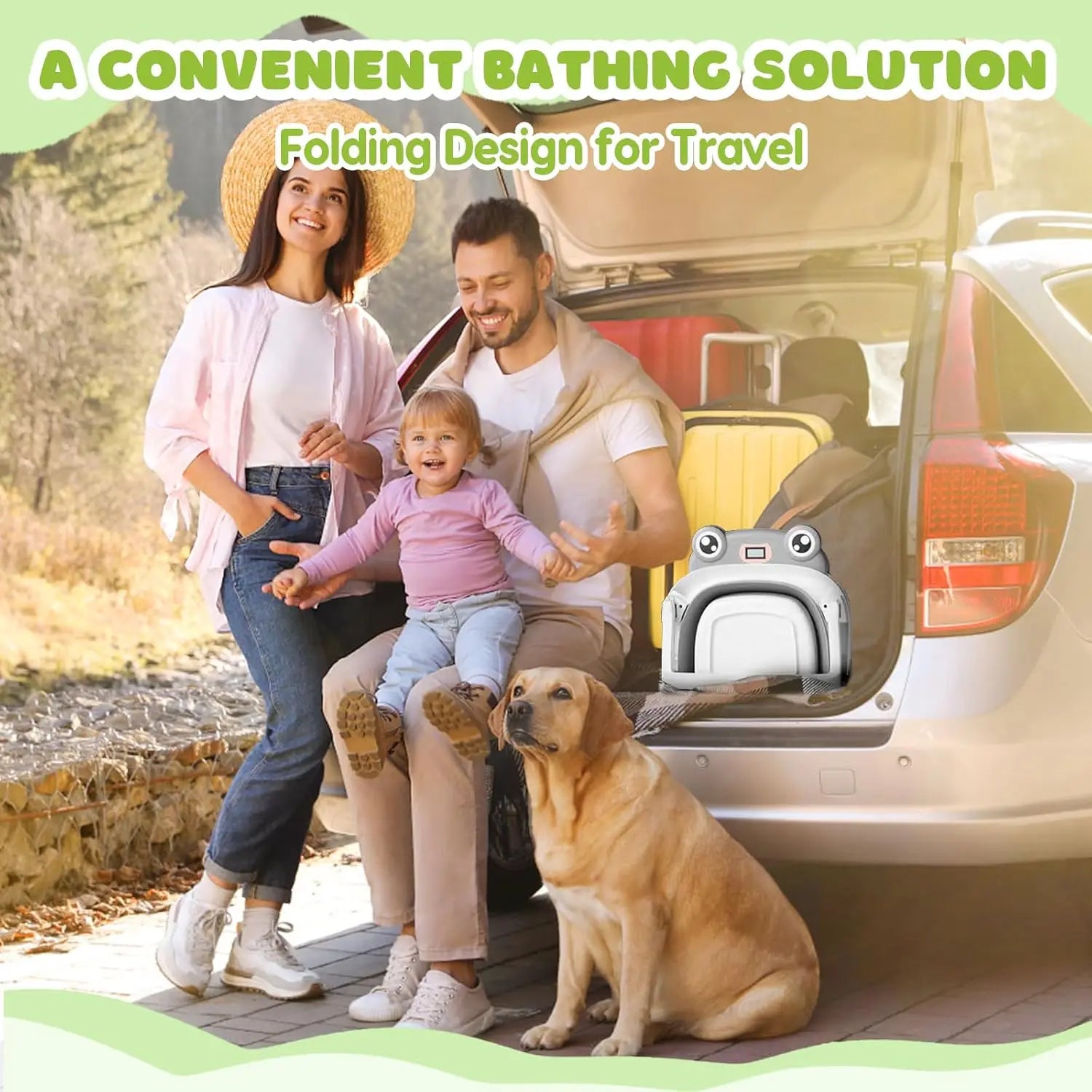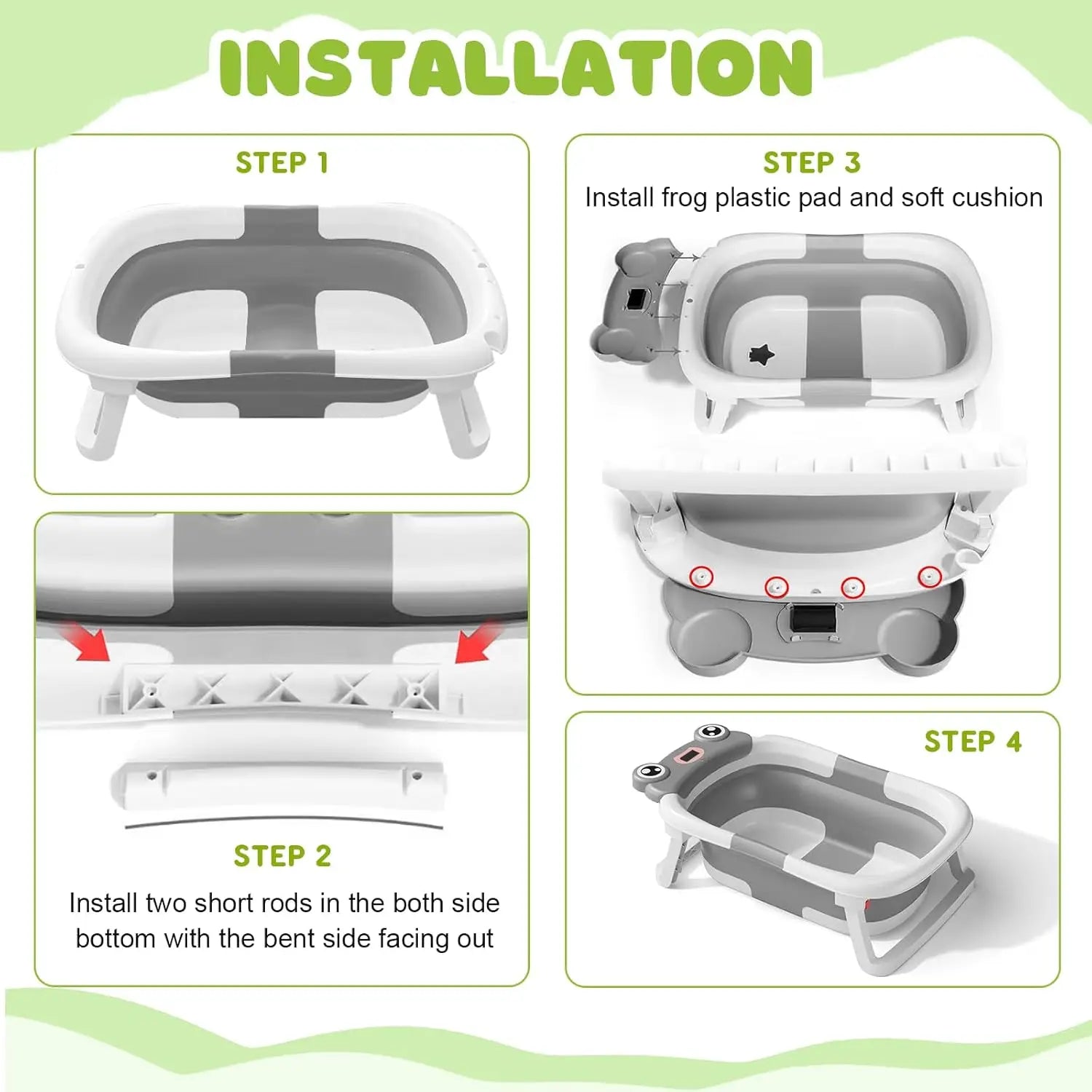 Baby Bath Tub with Bath Cushion Foldable Bathtub with Thermometer Shower Cap Shower Brush for Newborn and Toddler 0-36 Months