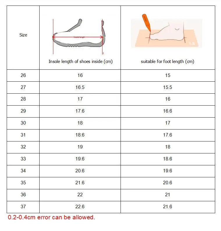 Shoes Length: 16cm,17cm,17.5cm,18cm,18.5cm,19cm,19.5cm,20cm,20.5cm,21cm,21.5cm,22cm