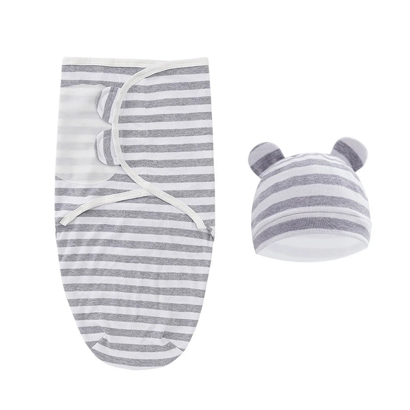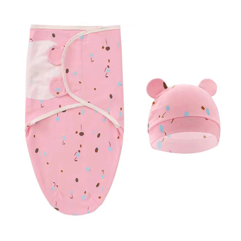 Muslin Newborn Sleeping Bag Hat Set Cotton Baby Swaddle Blanket Wrap Adjustable New Born Sleep Sack Infant Sleepwear 0-6M