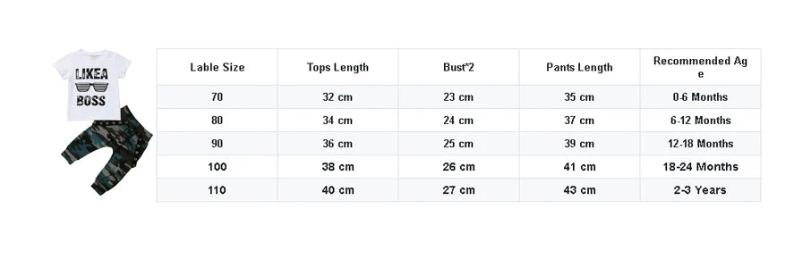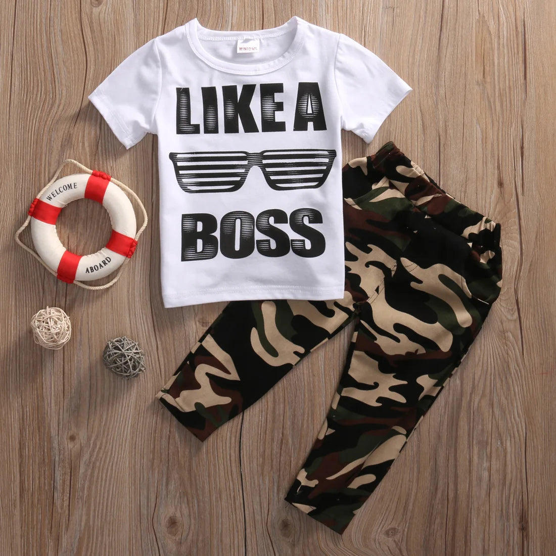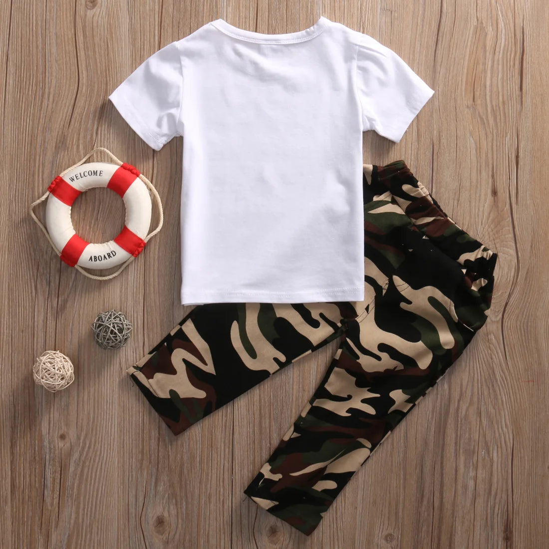 Newborn Baby Boys Clothes Toddler Kids Short Sleeve Letter T-shirt Camo Pants 2Pcs Outfits Set Baby's Clothing