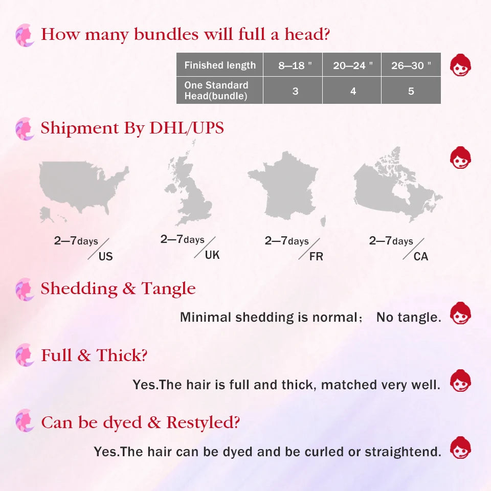 For Full Head: 3-5 Pcs Meet The Needs of 98% Of Customers